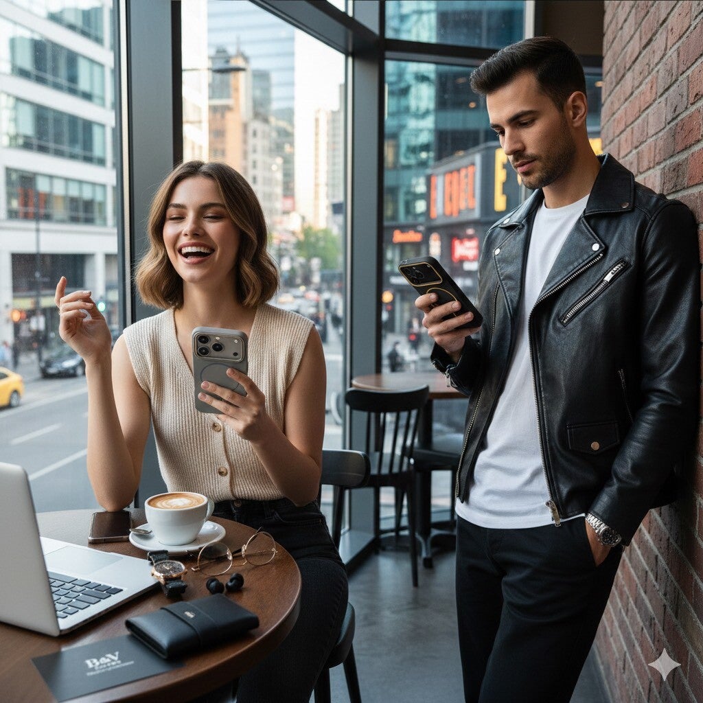 • Contrasti Iconici: Finiture opache "deep black" e "clay" impreziosite da profili contrastanti del anello magsafe che elevano il tuo look.